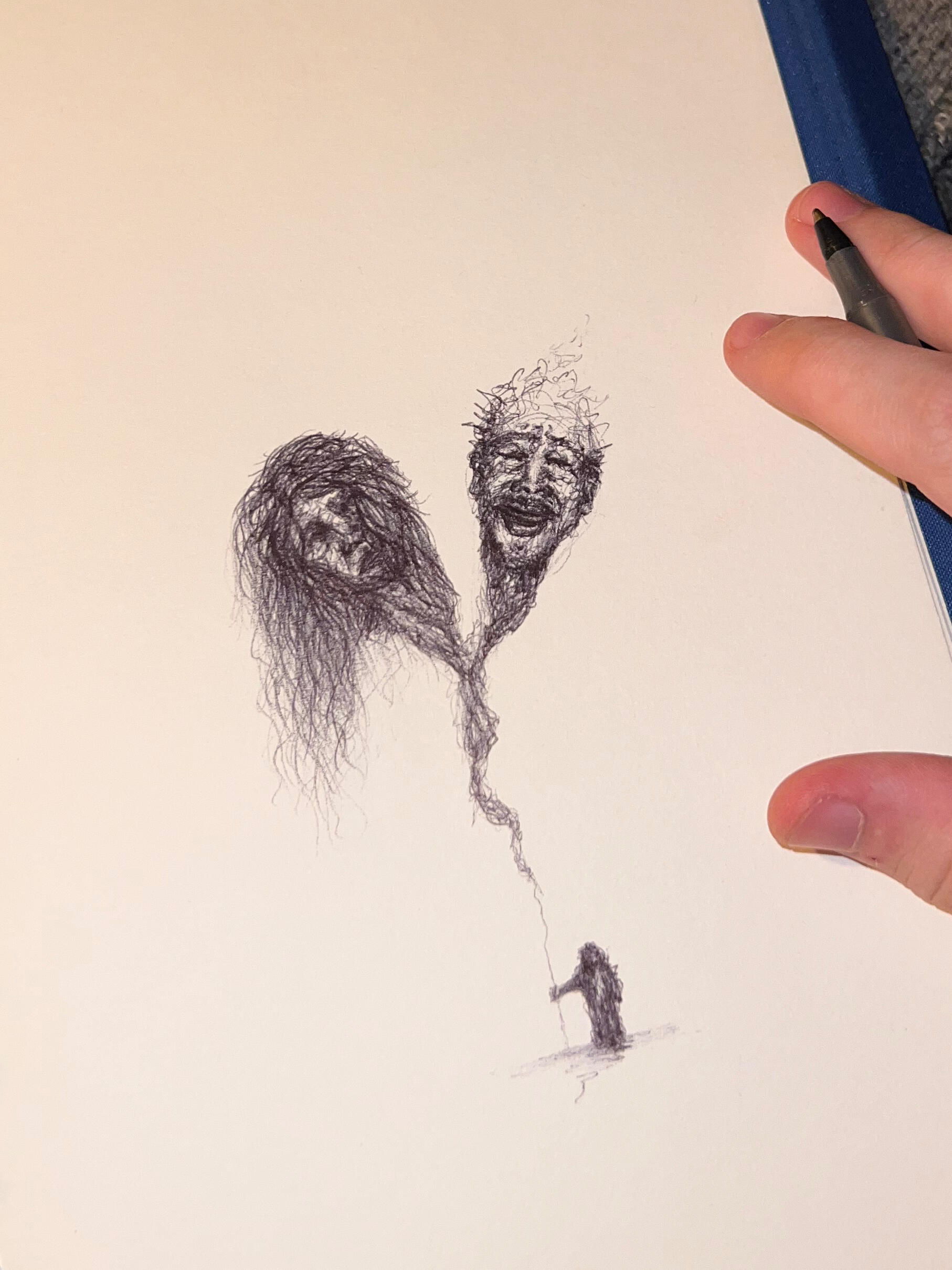 I am a mixed media artist from Tempe, Arizona. My early work focused on fine-line drawings in ink and pencil, and over time, I’ve expanded into digital and painted media as well. For the past 5 years, I have been designing visuals for musicians and clothing brands. I am currently honing my oil painting skills under artists Charles and Michael Pabst.